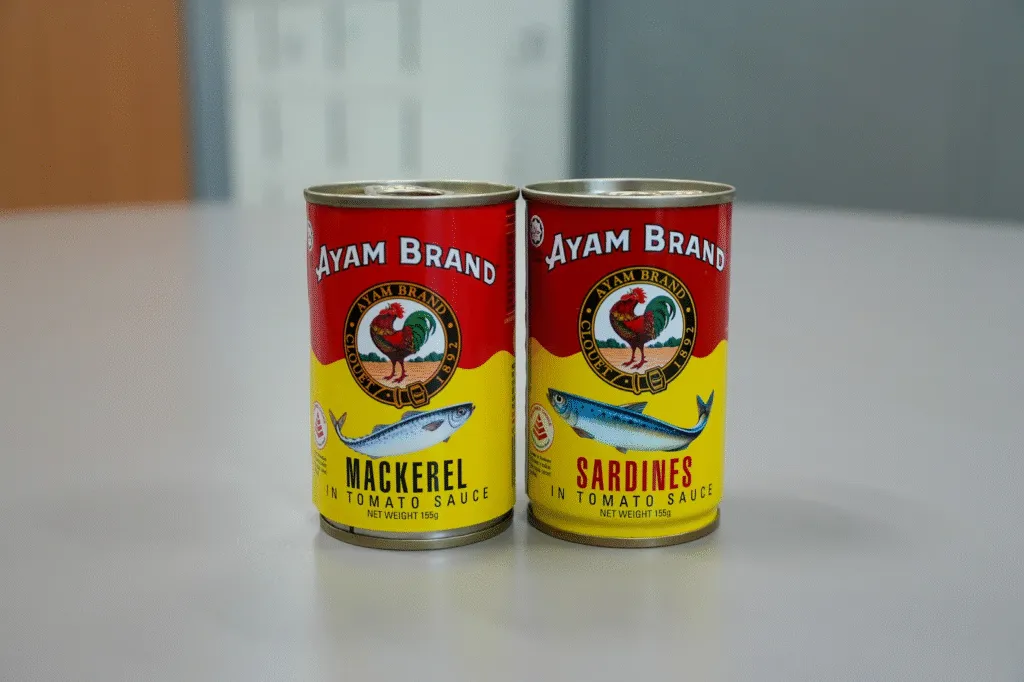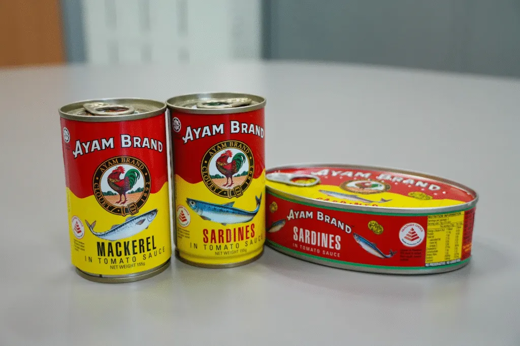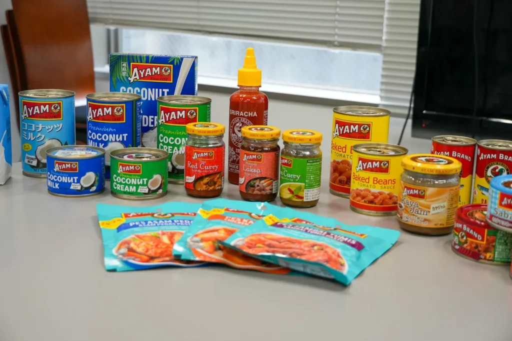 アヤム担当者さん: 現地での認知度は非常に高いです。特に、この黄色と赤のパッケージのイワシとサバの缶詰は、現地マレーシアのシェアNo.1で、ブランドのアイコン的な商品になっています。